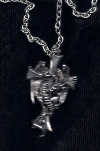One year, David gave me a book of Roz Chast cartoons and an odd, disturbing pendant he found on a Goth web site: a dragon, alive, evil, and triumphant, coiled from top to bottom around a St. George cross.
